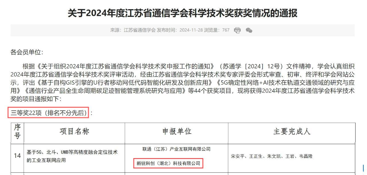 這一成果高度彰顯了江蘇省通信學會對新銳科創在定位技術創新與實際應用落地方面突出能力的認可與贊譽。新銳科創將以此為激勵,持續奮進,在技術研發與產業服務道路上續寫更多輝煌篇章。