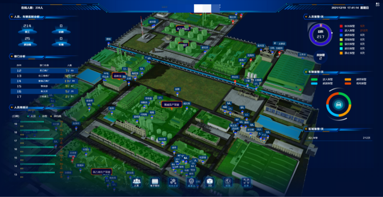 此外,該系統還具備豐富的安全管理功能,如一鍵求救、電子圍欄、軌跡回放等,為露天采場的人員安全提供了全方位的保障。系統全面記錄各區域人員分布及報警信息,以圖表或地圖等直觀形式展現,實現了各類信息的可視化,為企業的安全管理提供了有力的數據支持。
